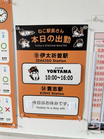 今日は「よんたまちゃん」が出勤予定だけど出勤1番にすぐに伊太祈曽祭の式典出席予定なので駅にはいらっしゃらない模様。