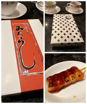 ケーキか何か買って行きたかったけど、十三はそれらしいお店がなくて…とみたらし団子でお祝い🥂🍡♪