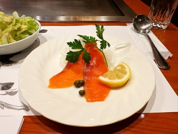 まずは前菜🫒…オシリーナの大好物、サーモンです😍。