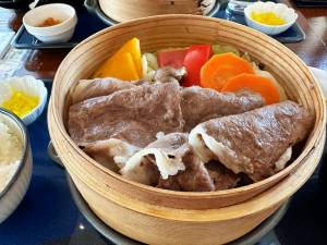 お蕎麦やら海老フライやらカレーやらステーキやら何でもメニューにあるんやけど、近江せいろ蒸しが魅力的😍!!!