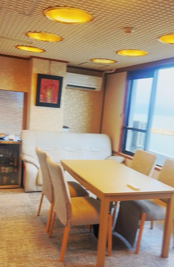 和室で食べるか海が見える洋室で食べるか…。