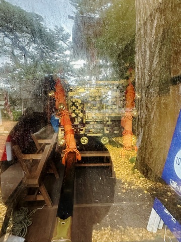 本殿左側の建物の中には神輿が数基保管されていました。見えるかな?