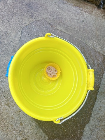人生発の釣りです🎣✨✨。エサはちっちゃなエビで頭と胴をちぎって潰して針につける…ってえっ(゚o゚;;?オシリーナ素手でエビに触るの😱???