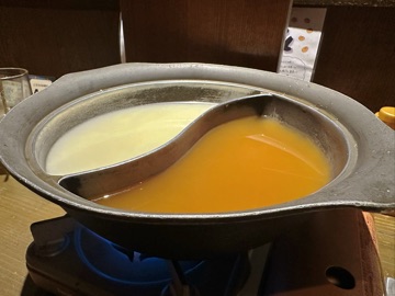 右の豆乳鍋にはコラーゲンの塊を入れてくれます。