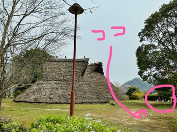 左側の竪穴式住居🛖の奥に桜🌸…わかる!?