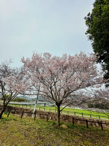 右側の木の奥には桜の木があるんやけど、その下にビニールシート敷いて6人ほどの家族連れがお花見🌸してます🍙☺️。