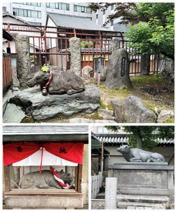 菅原道真公は「乙丑(きのとうし)」に誕生され🐣、亡くなる際の遺言が「轜車(じしゃ)を人に引かせず牛の行くところにとどめよ」とのことで、その場所が都府楼の北西(丑寅)の方だったなど、多くの牛との関わりや伝承があり、天神信仰には牛がつきものとなったのだそうです。