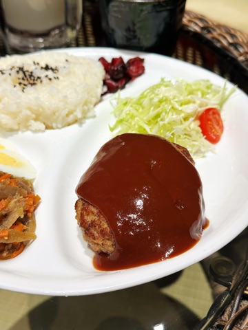 ハンバーグにソースがかかってなくて後から持って来られて初めて気づきました(笑)かけたらビジュアル的にしっくり来ましたね☺️。