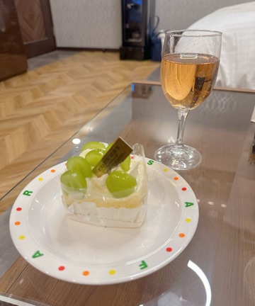 ノンアルコールのワインとフルーツたっぷりのスイーツを一緒に食べたり仲良しタイムを満喫です❣️。