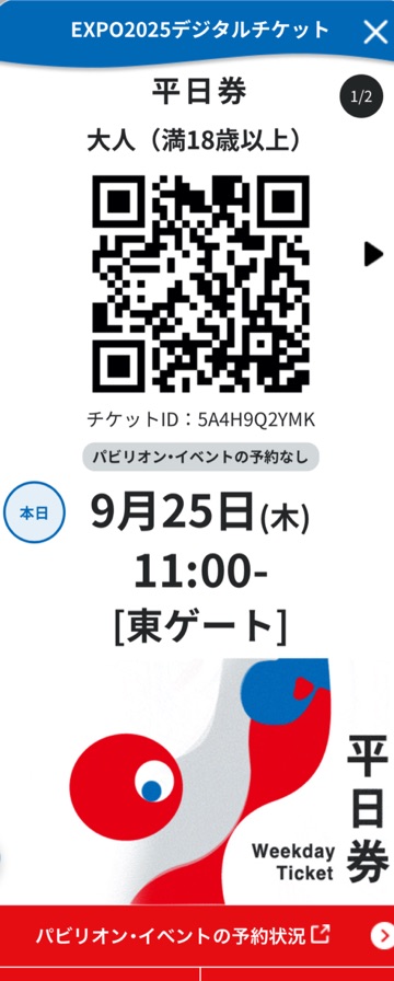 予約の必要なパビリオンは7日前も当日も抽選に外れて、予約不要のパビリオンも人数制限🚫で並ぶことすらできず…。