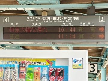 京都線のトラブルの影響で京都の車庫すら出られていないようで、1本後の新大阪発のくろしおで白浜に向かうことに😱!