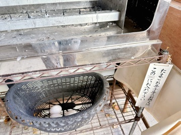 「たまご、お菓子のお供えはこの棚に入れてください。」って書いてあります🤭。