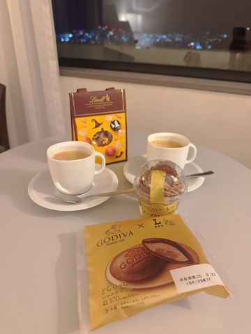 電車の遅れで予定よりも30分遅い蜜談スタートになっちゃって心配かけてごめんね。一緒に神戸の夜景を見ながらマスター(富士山さん)が淹れてくれたコーヒーを飲みながらスイーツタイム🍰。